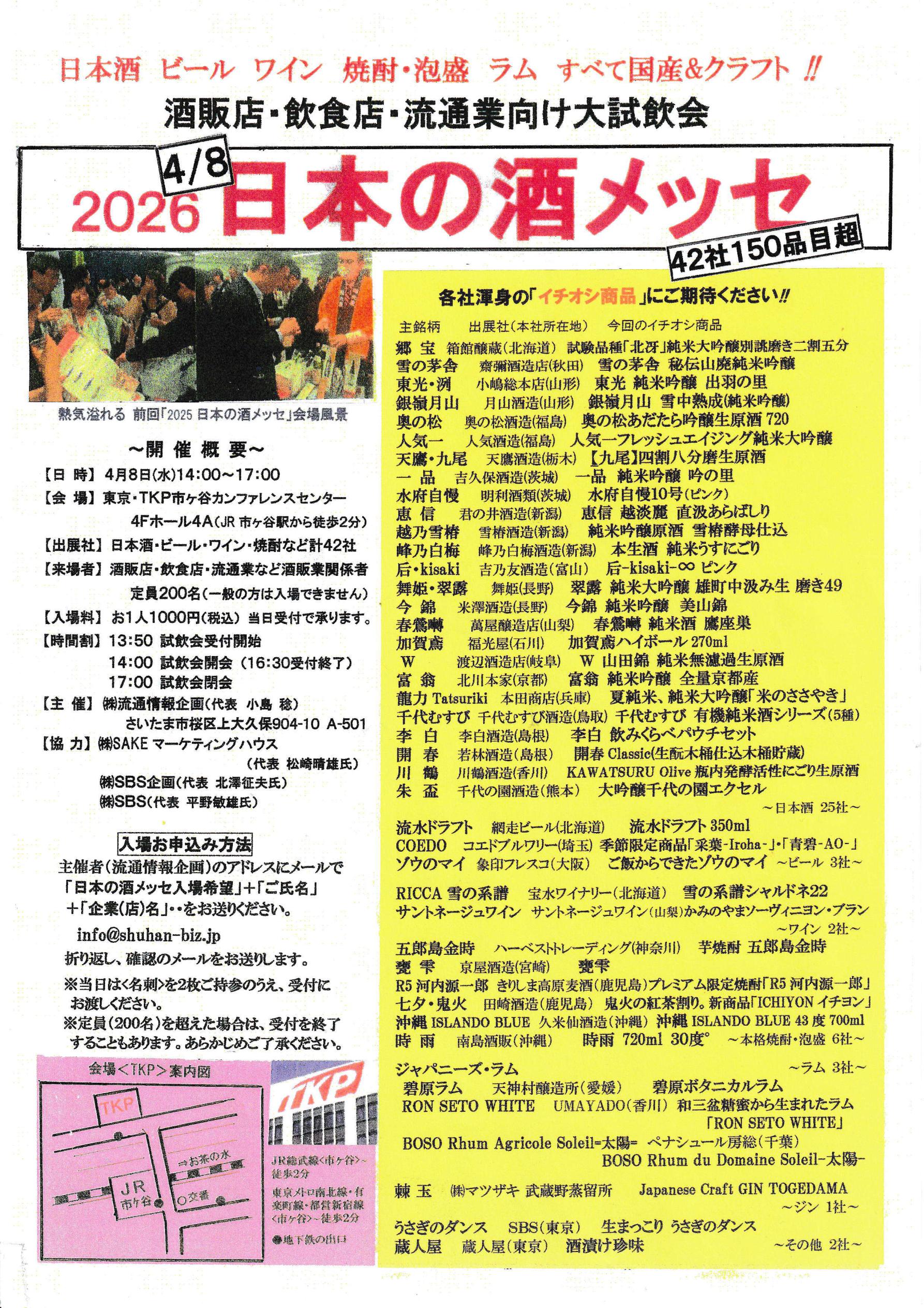 2026年 日本の酒メッセ 酒販店・飲食店・流通業向け大試飲会